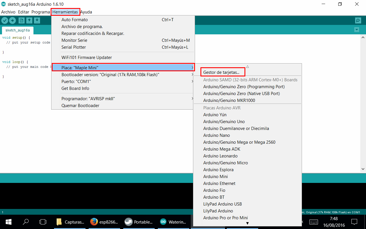 4) Abrimos el menú "Herramientas" -> "Placa" -> "Gestor de tarjetas..."