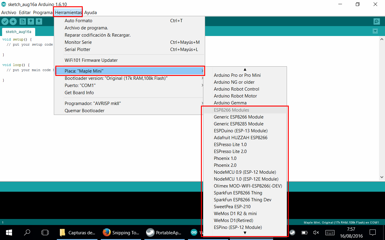 8) Ya estarán disponibles las placas en el menú "Herramientas" -> "Placa"