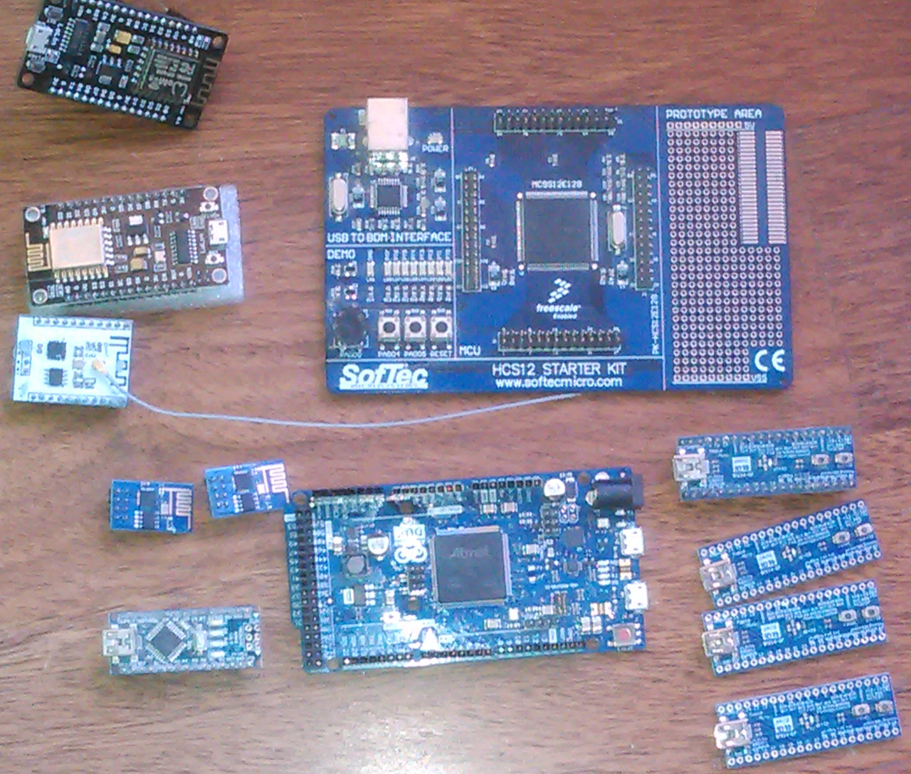 Microcontroladores ESP8266: Desarrollado como un puente Wifi, estos dispositivos ya integran un microcontrolador de 32 bits a alta velocidad (tanto o mas que STM32) para manejar la WiFi y se pueden reprogramar y usar sin necesidad de otro. La pega es que se ha de programar de manera noo-bloqueante si no deseamos interferir con el funcionamiento de la WiFi. Aquí estarían todos los modelos de ESP8266, NodeMCU, WROOM, etc.