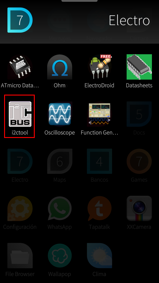 Pues bien, esta App permite escanear y probar el bus I2C del teléfono. Se puede usar para desarrollar una carcasa o, conectando los pines a un aparato, probar ese aparato.