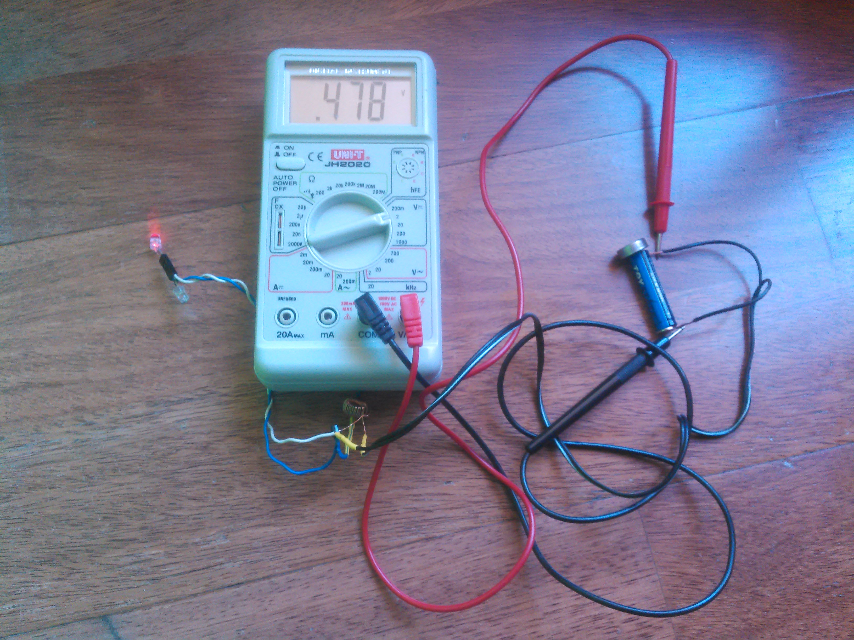 Además, hoy he hecho mi 1er ladrón de julios. Aquí podéis ver lo bien que funciona con una pila AAA realmente gastada (fotos de 0,478V a 0,388V, pero seguía):